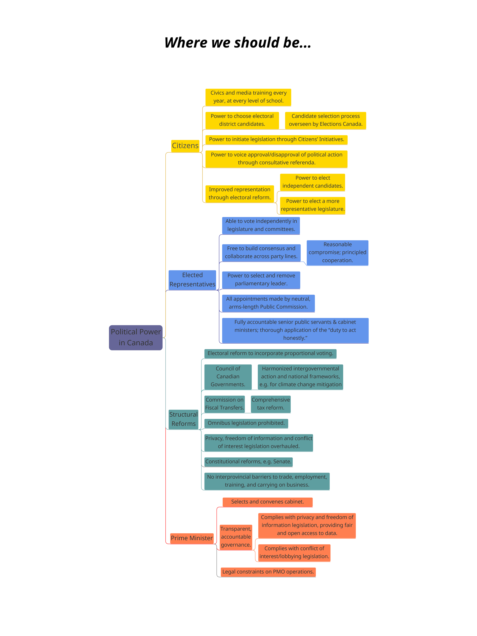 To ensure accountable and responsive government acting in the long-term interest of all Canadians requires methodically implementing a wide range of reforms to strengthen our representative institutions and practices and put an end to debilitating faux democratic forces.